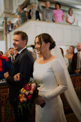 I Egersund strålte sola fra skyfri himmel da Thor og Julie ga hverandre sitt ja. Barbeinte føtter i hvit sand, krystallblått hav og sterke sommerfarger satte stemningen for bildene. Dagen var full av tårer, latter, fine ord og gode relasjoner – avsluttet med en helt magisk solnedgang.